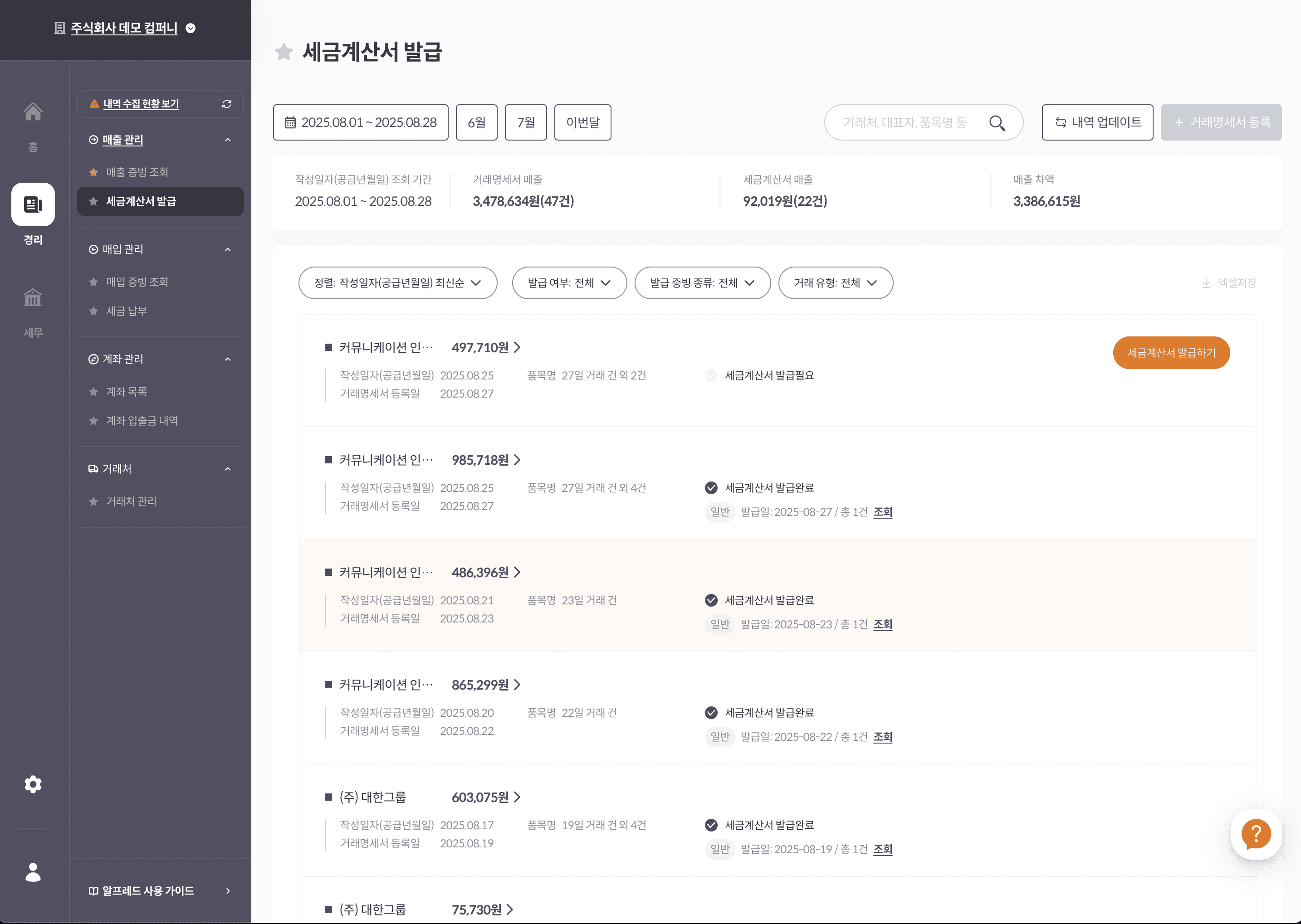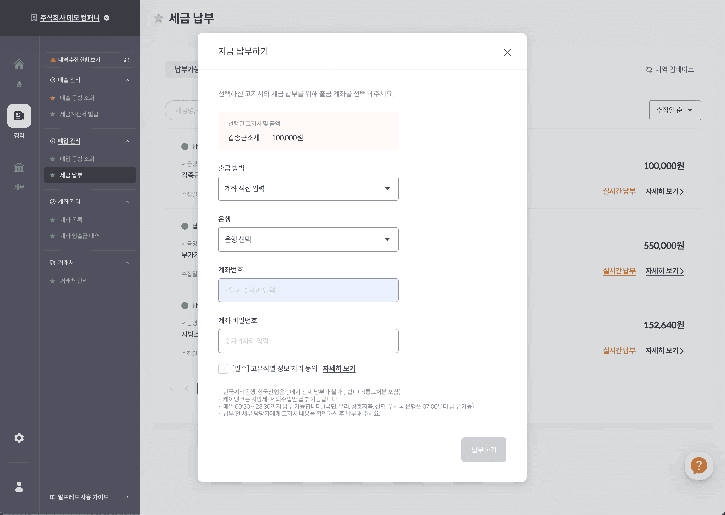 세무시스템(전체 기능)