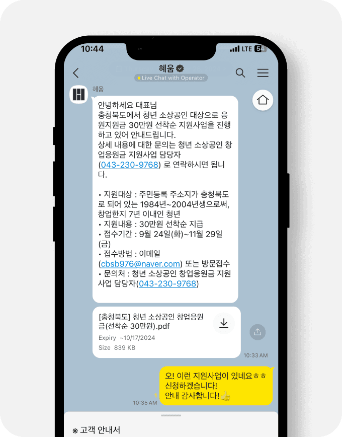 다른 기업들은 왜 하는지 이해가 안되는 불필요하고 반복적인 메일링 서비스를 통해서 불편함을 푸시했다면, 혜움은 사업자에게 진짜 필요한 다양한 정보를 메일로 전달해주고 있습니다.