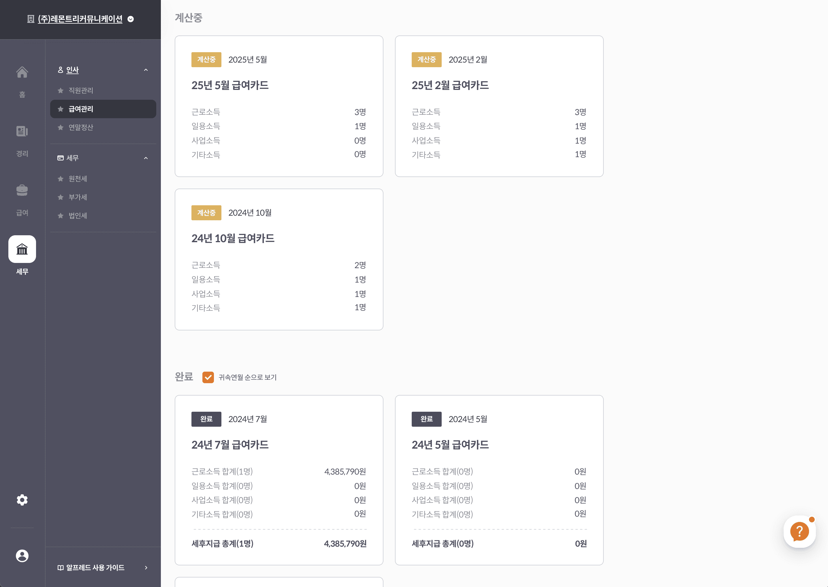 결산 및 세무조정(연 1회 별도 과금)