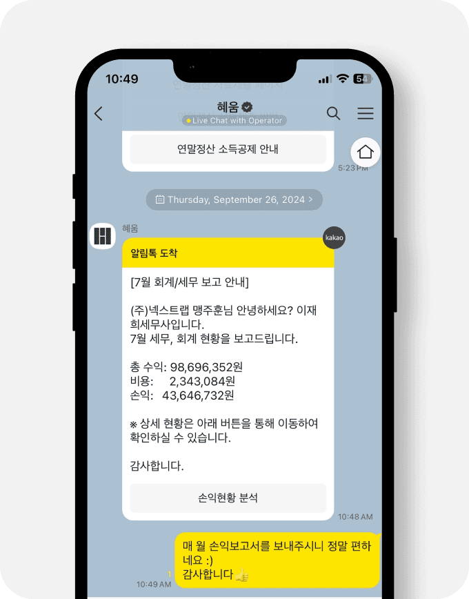 혜움은 스타트업을 가장 잘 아는 세무법인입니다. 즉각즉각 실시간 응대가 가능하고, 잦은 소통, 많은 소통이 가장 큰 장점이라고 생각합니다.
